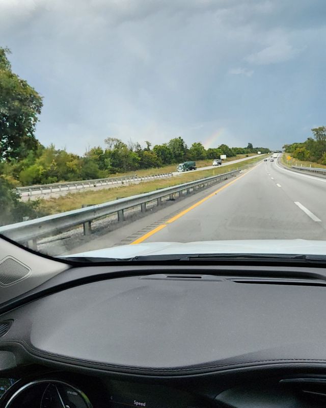 Rain smacks my wipers as my tires rumble on the wet highway, through Kentucky traffic. I squint at the road to see the ominous blue-gray clouds paint a promising array of color. It straddles four lanes twice, as I drive by.